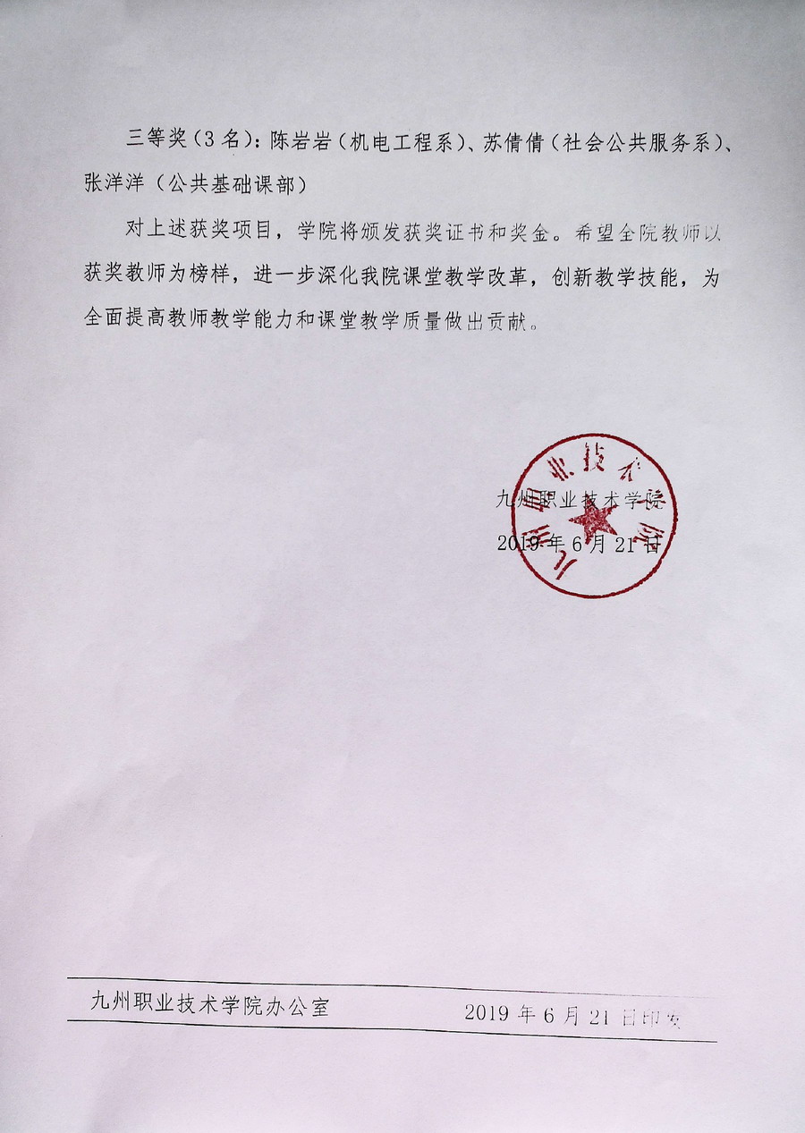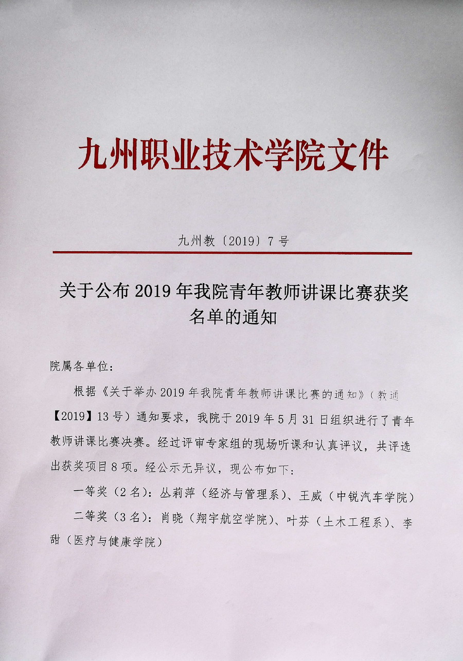 关于公布2019年我院青年教师讲课比赛获奖名单的通知